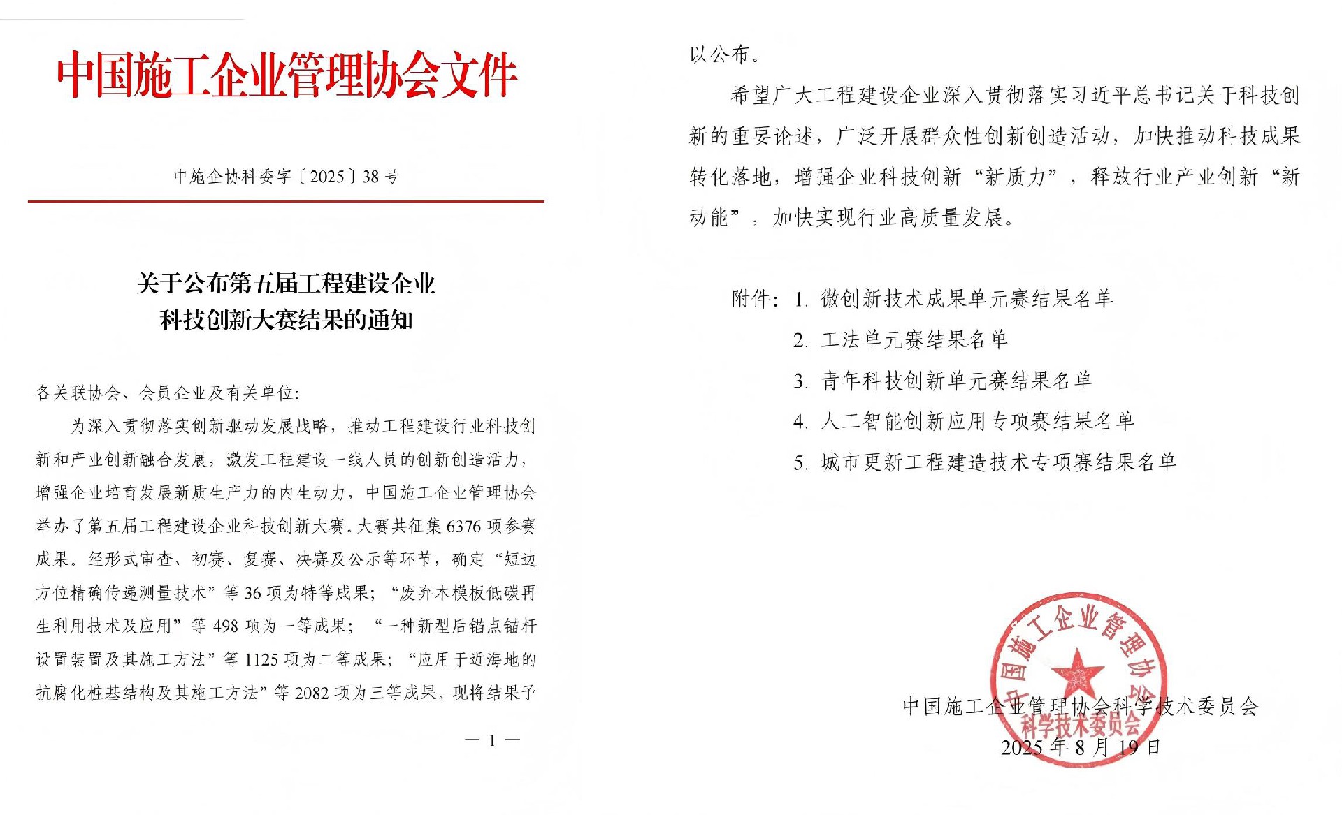 近日,第五屆全國工程建設企業科技創新大賽獲獎結果出爐,集團在“青年科技創新單元賽”中斬獲一···